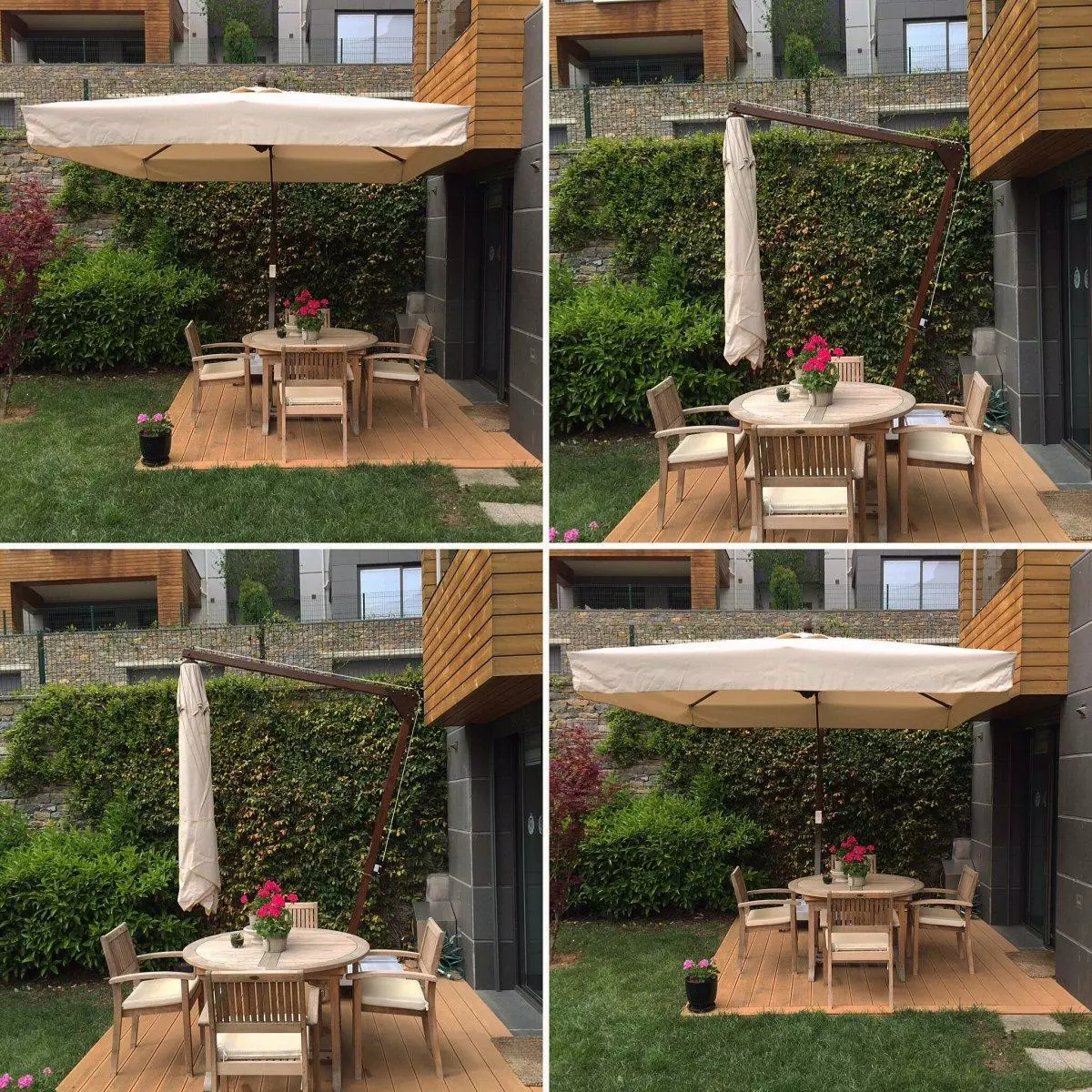 Професійна парасоля захистить від яскравих сонячних променів і створить приємну затінену атмосферу в приватних садах, зони біля басейну, відкритих літніх майданчиках кафе, барів і ресторанів. Виконання купола можливо з трьох тканин: бежевий поліестер, олефін і акрил. Варіанти забарвлення представлені в кольоровій палітрі для тканини олефін і акрил. Покриття опори і спиць можна вибрати з представленої палітри, в чорному кольорі + 10% до вартості виробу. Ціна на сайті вказана за тканину бежевий поліестер, вартість купола з тканини акрил і олефін уточнюйте у менеджера.