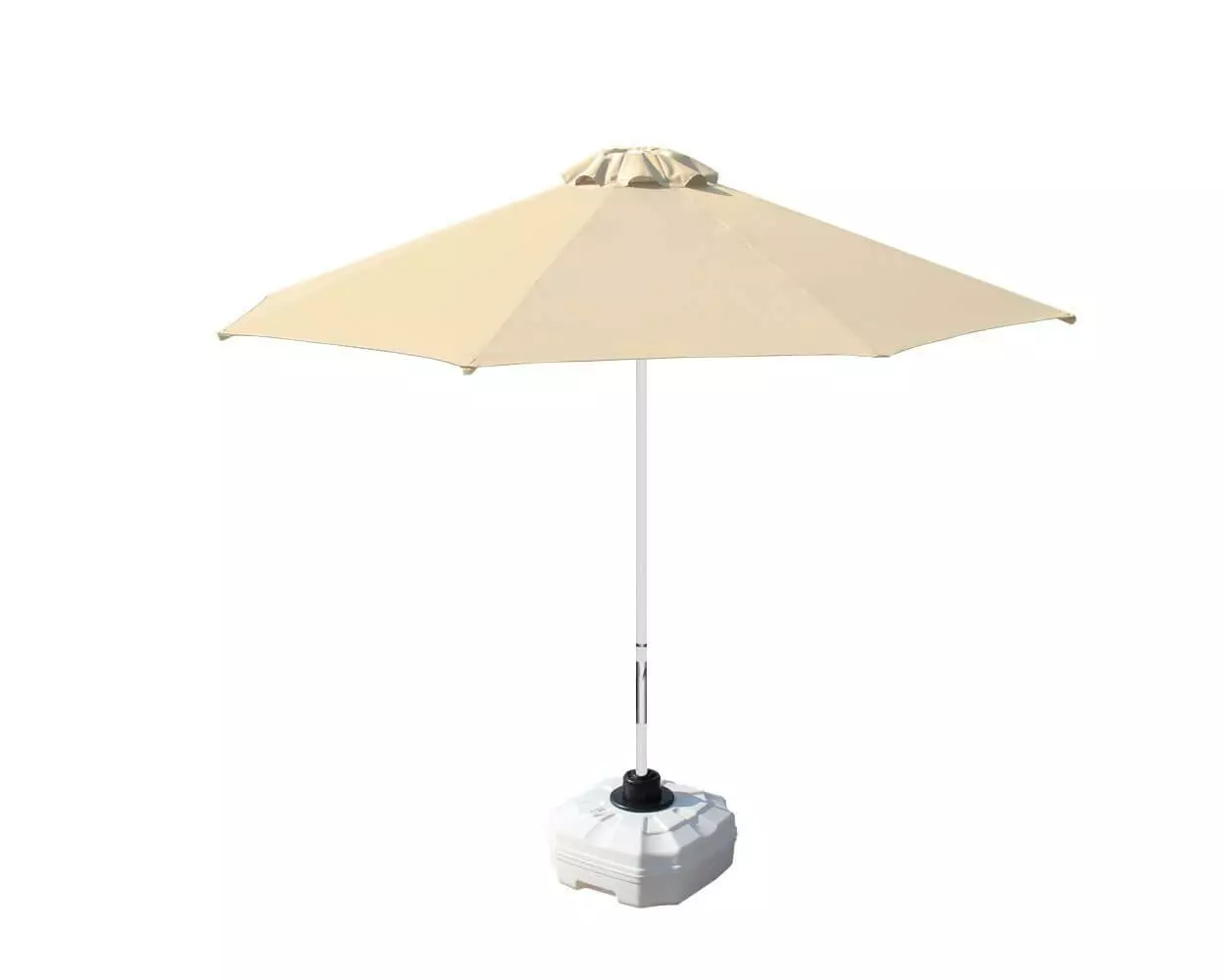 Професійна парасоля захистить від яскравих сонячних променів і створить приємну затінену атмосферу в приватних садах, зони біля басейну, відкритих літніх майданчиках кафе, барів і ресторанів. Виконання купола можливо з трьох тканин: бежевий поліестер, олефін і акрил. Варіанти забарвлення представлені в кольоровій палітрі для тканини олефін і акрил. Покриття опори і спиць можна вибрати з представленої палітри, в чорному кольорі + 10% до вартості виробу. Ціна на сайті вказана за тканину бежевий поліестер, вартість купола з тканини акрил і олефін уточнюйте у менеджера.
