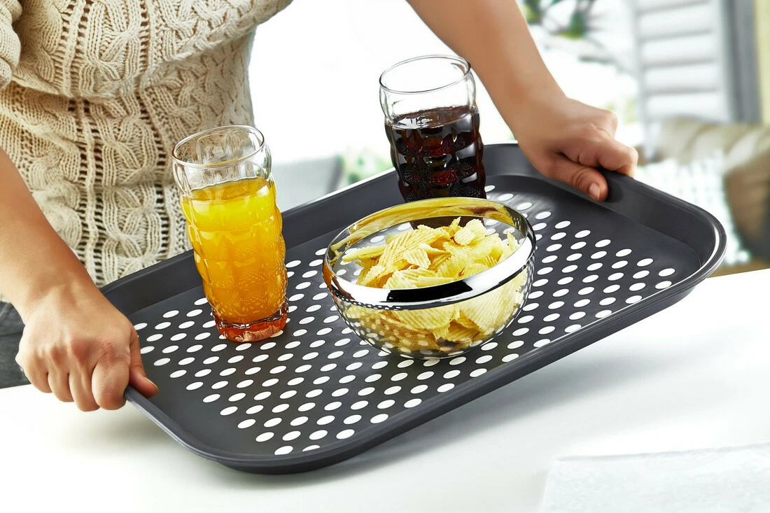 Піднос Irak Plastik з гумовими вставками, перешкоджає зісковзуванню предметів при перенесенні. Також гумові вставки є на зворотному боці. Виготовлений з високоякісного пластику, має приємний колір і зручні габарити.