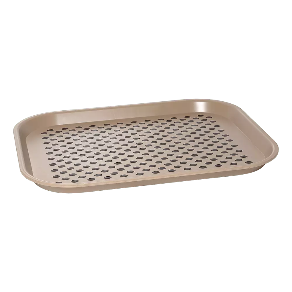 Піднос Irak Plastik з гумовими вставками, перешкоджає зісковзуванню предметів при перенесенні. Також гумові вставки є на зворотному боці. Виготовлений з високоякісного пластику, має приємний колір і зручні габарити.