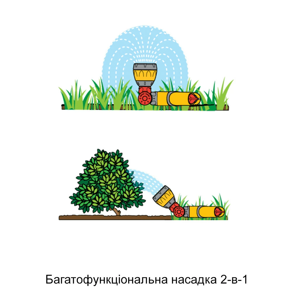 - зрошення для невеликих газонів, пістолет перетворюється в інтегрований зрошувач із зоною покриття 69 кв.м.
