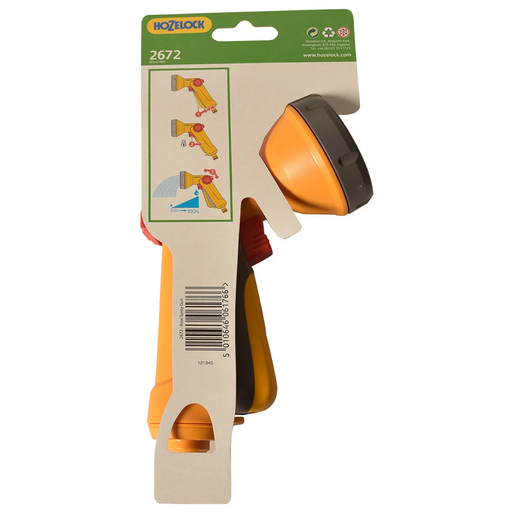 Пістолет — розпилювач Hozelock 2672 Rose-Gun.Компактний і простий у використанні водяній пістолет. Управляється однією рукою. Володіє регулюванням сили потоку, яка дозволяє заощадити до 50% води. Один тип розпилення: м'який струмінь \ душ. Передній курок з покриттям Soft-Touch..