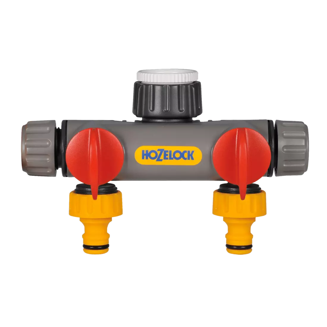 Роздільник потоків HoZelock 2252 двопутевий. Адаптери, що входять в комплект, дозволяють підключитися до загвинчування 1/2 "(12,5 мм), 3/4" (19мм), 1 "(25мм), завдяки чому, його можна підключити до більшості садових кранів. Двопутевий роздільник потоків для крана дозволяє підключити два поливальних аксесуара або два шланга до одного крану. Кожен з виходів обладнаний окремим клапаном управління витрати води з можливістю використовувати обидва виходи одночасно або один з виходів.