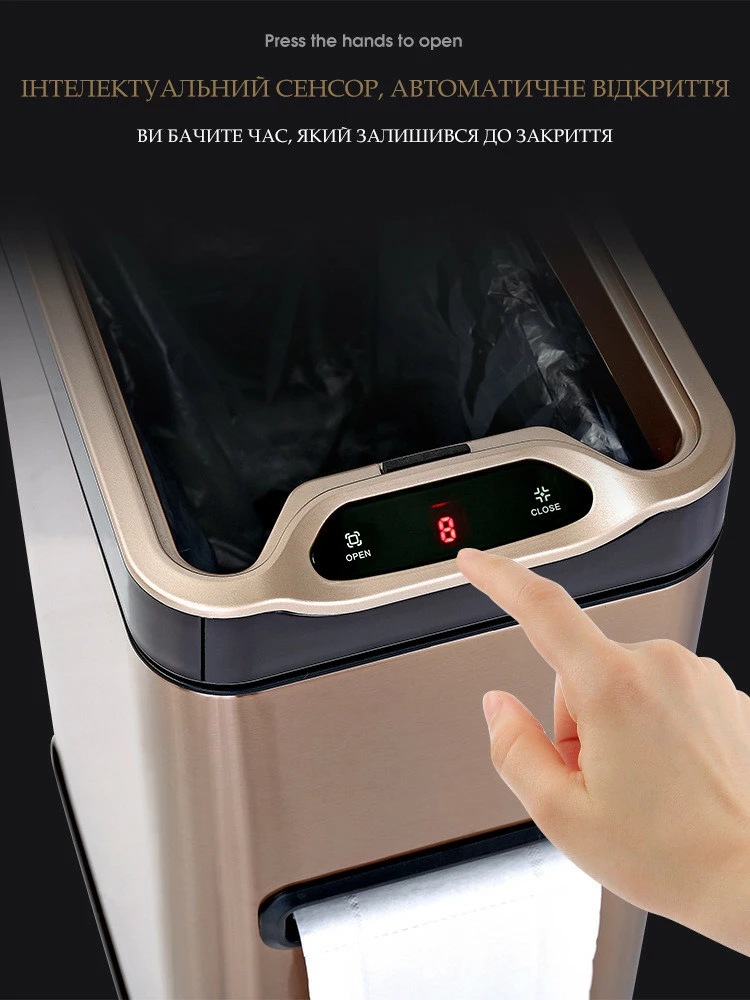 Відро необхідно ставити так, щоб перед передньою панеллю сенсора не було перешкод, щоб уникнути помилкового спрацьовування.