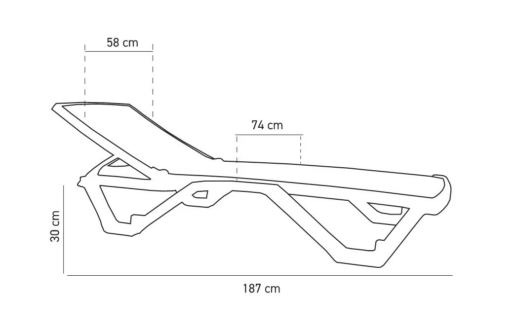 Шезлонг Mare, стане неодмінним атрибутом дачного релаксу, відпочинку біля моря чи басейну. Його приємна фактура забезпечить не тільки комфорт під час користування, а й легкість в експлуатації. Покриття (сітка) виготовлено з первинного поліпропілену, змішаного з еластичною, повітропроникною і «дихаючою» тканиною. Воно не розтягується і не дає усадку, не боїться вологи, швидко сохне, не вигоряє на сонці і залишається прохолодним на дотик навіть під палючими променями сонця. Спинку можна регулювати за допомогою розташованих на зворотному боці шезлонга пазів: вона приймає чотири положення. В основі спинки, є спеціальне поглиблення для дрібних предметів - ключів, телефону, крему для засмаги та ін. Конструкція шезлонга міцна, ергономічна і стійка. Для зручності переміщення модель оснащена коліщатками, допустиме завантаження до 200 кг. Каркас виготовлений з поліпропілену, матеріал стійкий до впливу вологи, перепадів температур, УФ-випромінювання. Штабелюються до 22 шт.