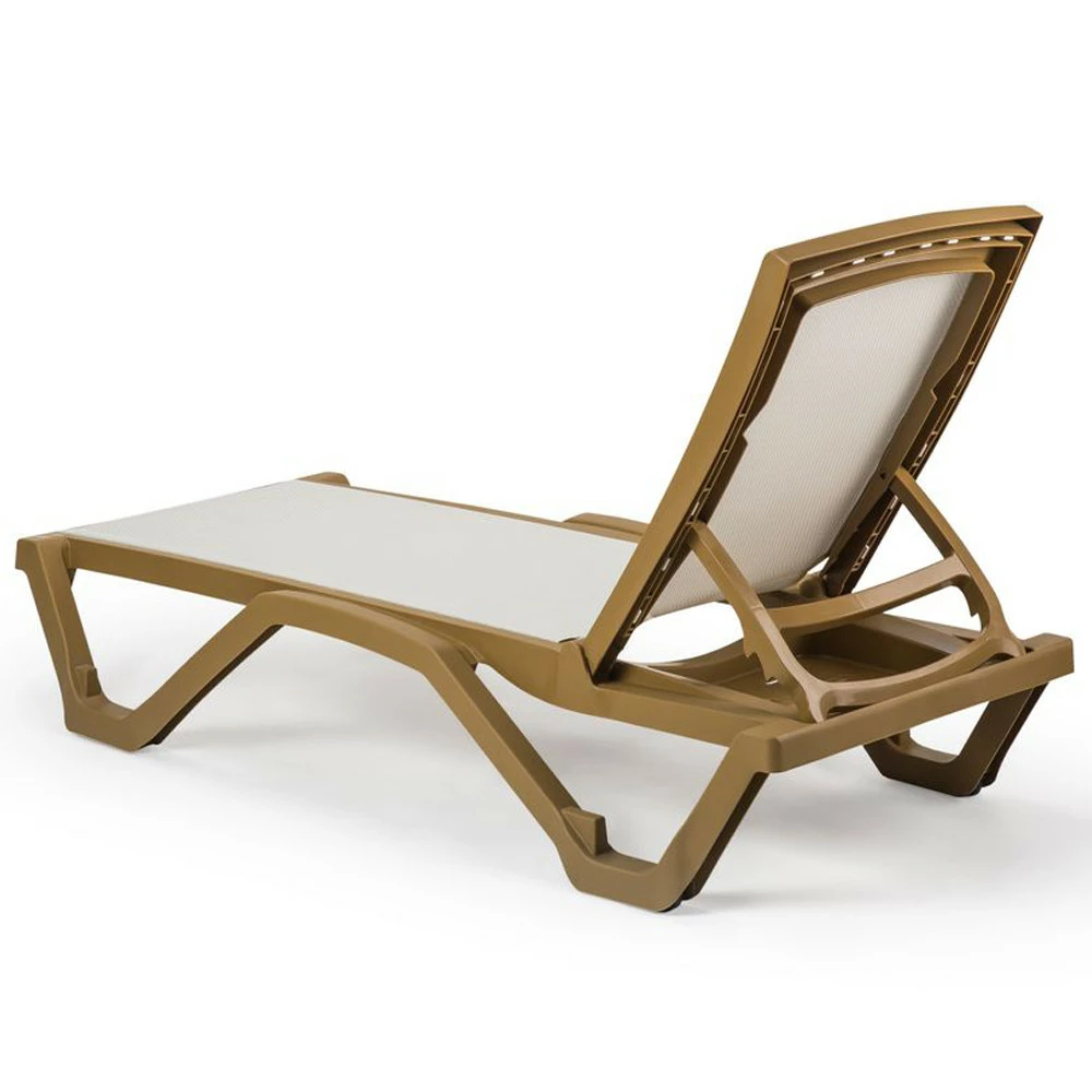 Шезлонг Mare, стане неодмінним атрибутом дачного релаксу, відпочинку біля моря чи басейну. Його приємна фактура забезпечить не тільки комфорт під час користування, а й легкість в експлуатації. Покриття (сітка) виготовлено з первинного поліпропілену, змішаного з еластичною, повітропроникною і «дихаючою» тканиною. Воно не розтягується і не дає усадку, не боїться вологи, швидко сохне, не вигоряє на сонці і залишається прохолодним на дотик навіть під палючими променями сонця. Спинку можна регулювати за допомогою розташованих на зворотному боці шезлонга пазів: вона приймає чотири положення. Конструкція шезлонга міцна, ергономічна і стійка. Для зручності переміщення модель оснащена коліщатками, допустиме завантаження до 200 кг. Каркас виготовлений з поліпропілену, матеріал стійкий до впливу вологи, перепадів температур, УФ-випромінювання. Штабелюються до 22 шт.