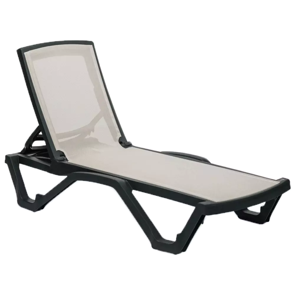 Шезлонг Mare, стане неодмінним атрибутом дачного релаксу, відпочинку біля моря чи басейну. Його приємна фактура забезпечить не тільки комфорт під час користування, а й легкість в експлуатації. Покриття виготовлено з повітропроникної «дихаючої» тканини. Воно не розтягується і не дає усадку, не боїться вологи, швидко сохне, не вигоряє на сонці і залишається прохолодним на дотик навіть під палючими променями сонця. Спинку можна регулювати за допомогою розташованих на зворотному боці шезлонга пазів: вона приймає п'ять положень. Конструкція шезлонга міцна, ергономічна і стійка. Для зручності переміщення модель оснащена коліщатками, допустиме завантаження до 200 кг. Каркас виготовлений з поліпропілену, матеріал стійкий до впливу вологи, перепадів температур, УФ-випромінювання. Штабелюються до 25 шт.