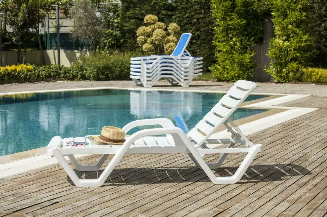 Шезлонг з підлокітниками Maris, стане неодмінним атрибутом дачного релаксу, відпочинку біля моря чи басейну. Його приємна фактура забезпечить не тільки комфорт під час користування, а й легкість в експлуатації. Спинку можна регулювати за допомогою розташованих на зворотному боці шезлонга пазів: вона приймає чотири положення. Конструкція шезлонга міцна, ергономічна і стійка. Для зручності переміщення модель оснащена коліщатками, допустима завантаження до 200 кг. Матеріал виробу поліпропілен, стійкий до впливу вологи, перепадів температур, УФ-випромінювання. Штабелюються до 25 шт.