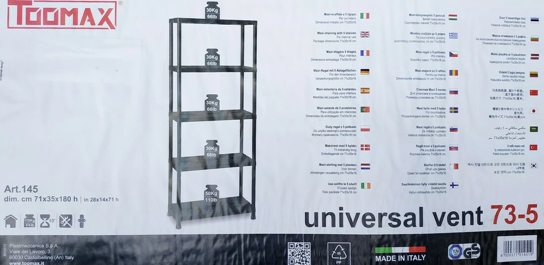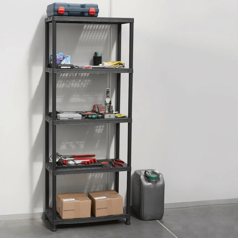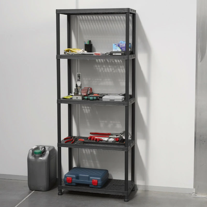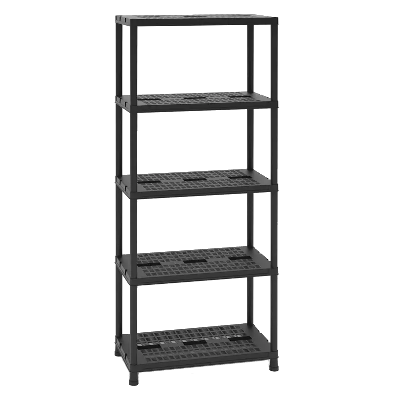 Універсальний пластиковий стелаж на 5 полиць Universal Vent 73-5. Стелаж можна застосовувати для побутових потреб: зберігання будь-яких неважких речей в будинку, гаражі, офісі. Так само, використовують для зберігання або демонстрації товарів в магазинах, торгових рядах, невеликих складах, підсобних приміщеннях. Пластиковий стелаж чорного кольору не мазкий і відмінно впишеться в будь-який інтер'єр. Пластик, на відміну від металу і дерева, не схильний до корозії, йому не страшна волога. Пластикові стелажі не вимагають фарбування, а легка збірка і невелика вага роблять їх дуже практичними і зручними при експлуатації і транспортуванні.
