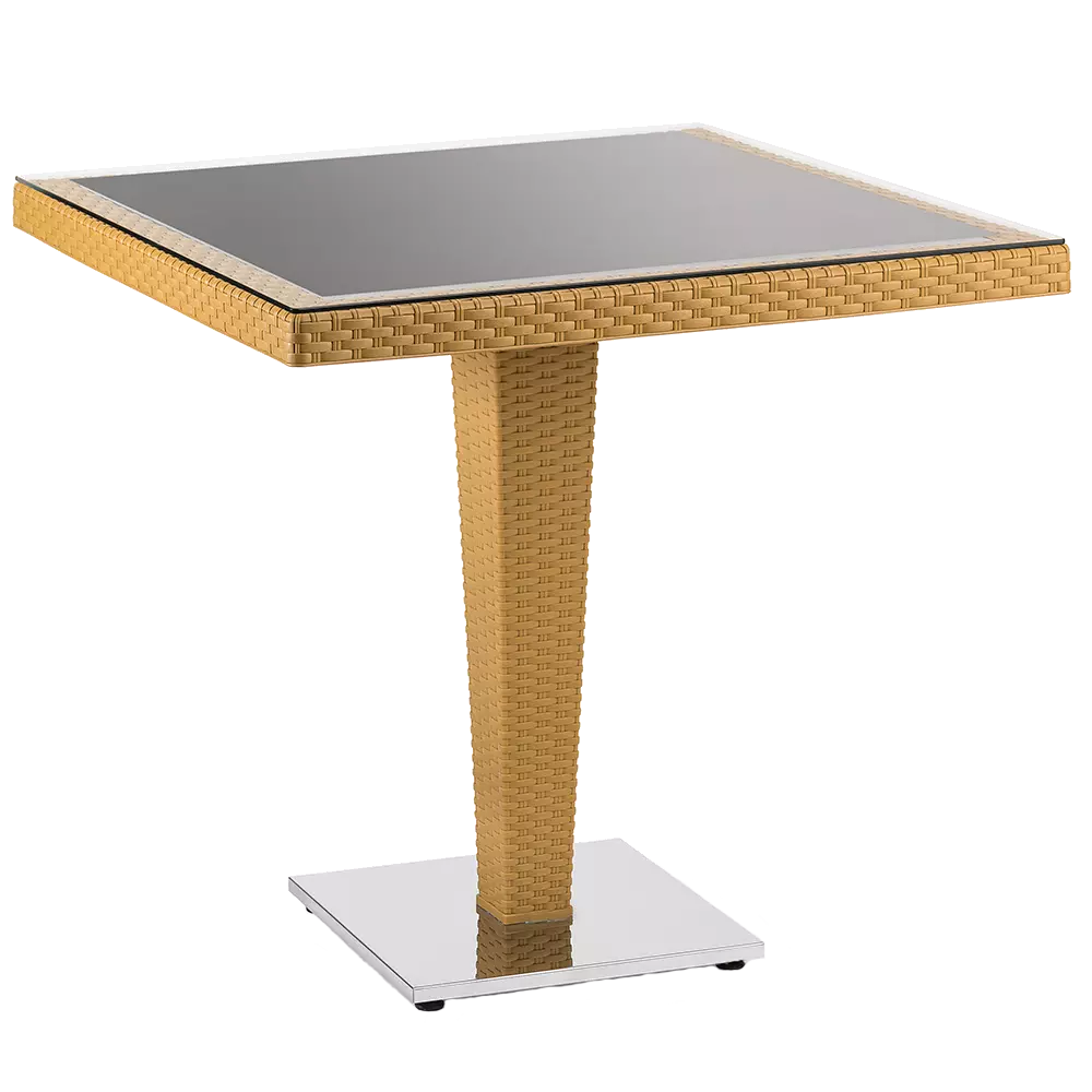 Стіл Tilia Antares 80x80 см стільниця зі скла, база нержавіюча сталь колір дерево
