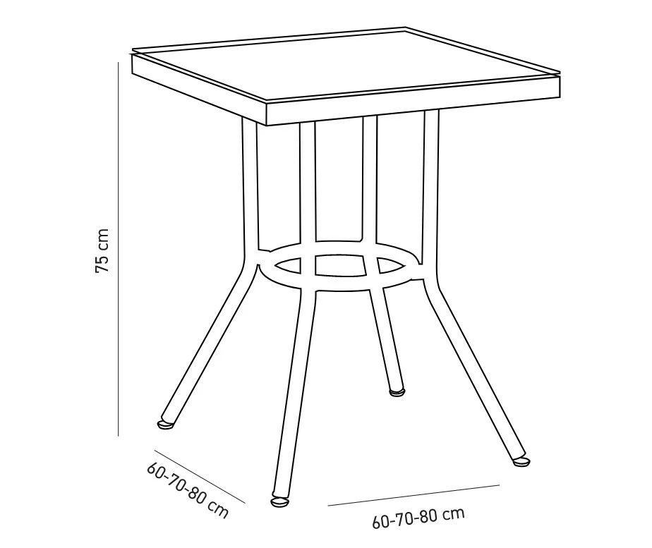 Компактний і витончений стіл KOBE з верхом стільниці з загартованого скла створить збалансований, гармонійний зовнішній вигляд кімнати не захаращуючи простір. Алюмінієва опора столу стійка і довговічна, не схильна до механічних пошкоджень, що говорить про збереження привабливого товарного вигляду на довгі роки. Ніжки з регулюванням висоти і ухилу. Стіл KOBE ідеально поєднується з кріслом FLASH-N, обидва вироби мають однаковий матеріал. Рекомендується використовувати в приміщенні.