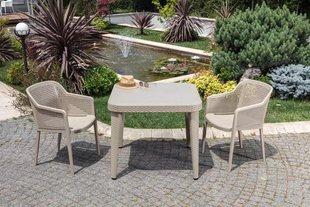 Стіл Osaka з пластиковою стільницею і каркасом під ротанг чудово підходить для використання, як в класичних так і в сучасних стильових напрямках. Стіл виглядає презентабельно, надає інтер'єру стильності і розкоші. Підходить для використання на вулиці біля басейну, терасах, садах, а також в приміщенні ресторанів, обідніх кімнат і кухонь. Ніжки мають регулювання висоти і ухилу. Матеріали виробу стійкі до перепадів температур, УФ-випромінювання.