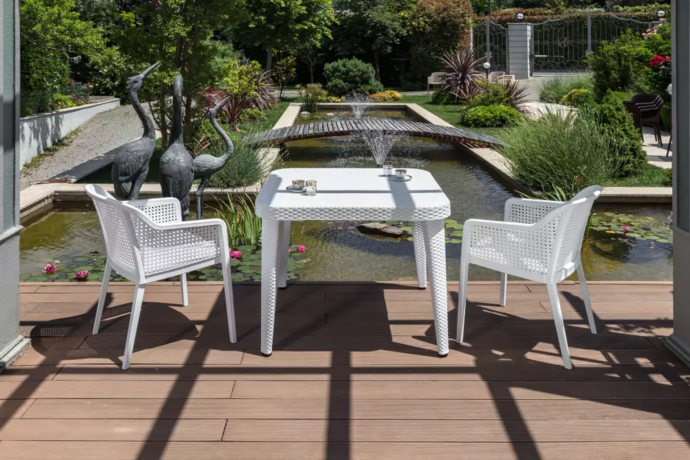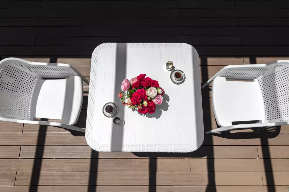 Стіл Osaka з пластиковою стільницею і каркасом під ротанг чудово підходить для використання, як в класичних так і в сучасних стильових напрямках. Стіл виглядає презентабельно, надає інтер'єру стильності і розкоші. Підходить для використання на вулиці біля басейну, терасах, садах, а також в приміщенні ресторанів, обідніх кімнат і кухонь. Ніжки мають регулювання висоти і ухилу. Матеріали виробу стійкі до перепадів температур, УФ-випромінювання.
