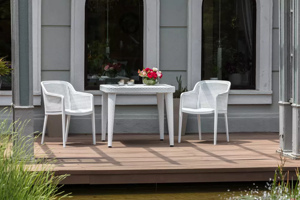 Стіл Osaka зі стільницею із загартованого скла і каркасом під ротанг чудово підходить для використання, як в класичних так і в сучасних стильових напрямках. Стіл виглядає презентабельно, надає інтер'єру стильності і розкоші. Підходить для використання на вулиці біля басейну, терасах, садах, а також в приміщенні ресторанів, обідніх кімнат і кухонь. Ніжки мають регулювання висоти і ухилу. Матеріали виробу стійкі до перепадів температур, УФ-випромінювання.
