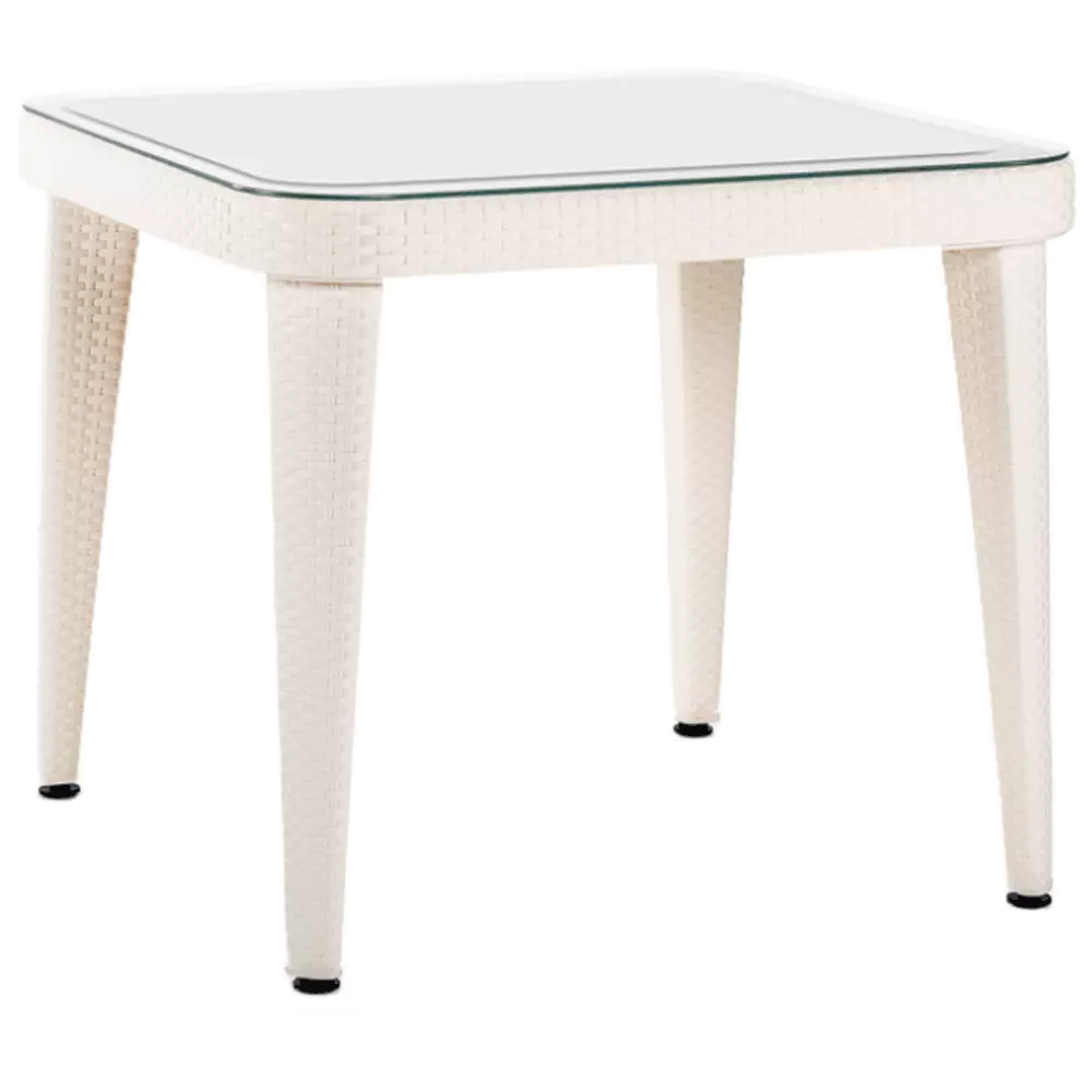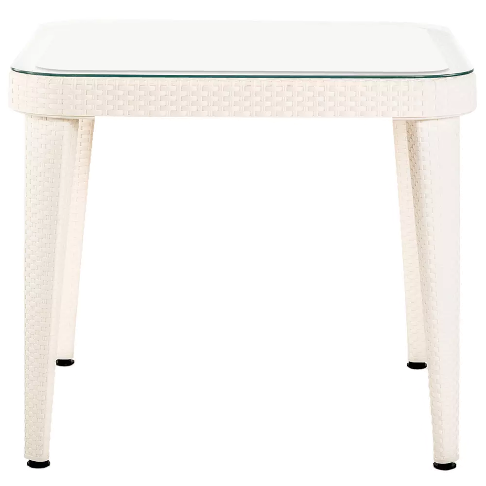 Стіл Tilia Osaka 90x90 см стільниця зі скла, ніжки пластикові кремовий