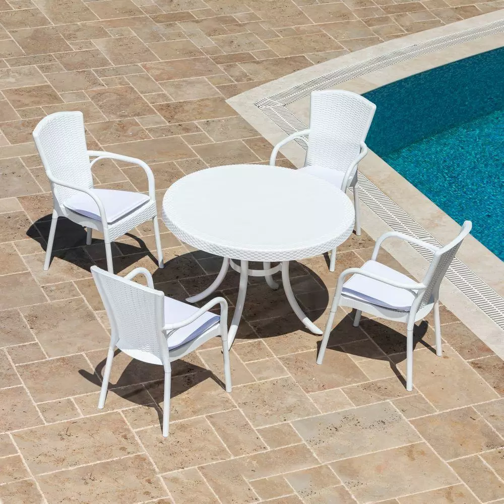 Стіл Osaka з пластикової стільницею під ротанг чудово підходить для використання, як в класичних так і в сучасних стильових напрямках. Стіл виглядає презентабельно, надає інтер'єру стильності і розкоші. Підходить для використання на вулиці біля басейну, терасах, садах, а також в приміщенні ресторанів, обідніх кімнат і кухонь. Міцні алюмінієві ніжки мають регулювання висоти і ухилу. Матеріали виробу стійкі до перепадів температур, УФ-випромінювання.