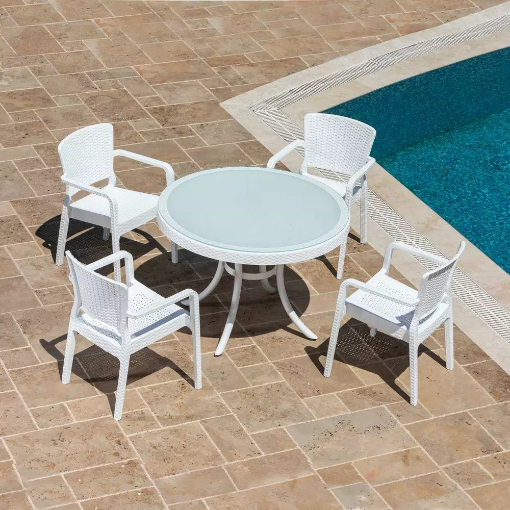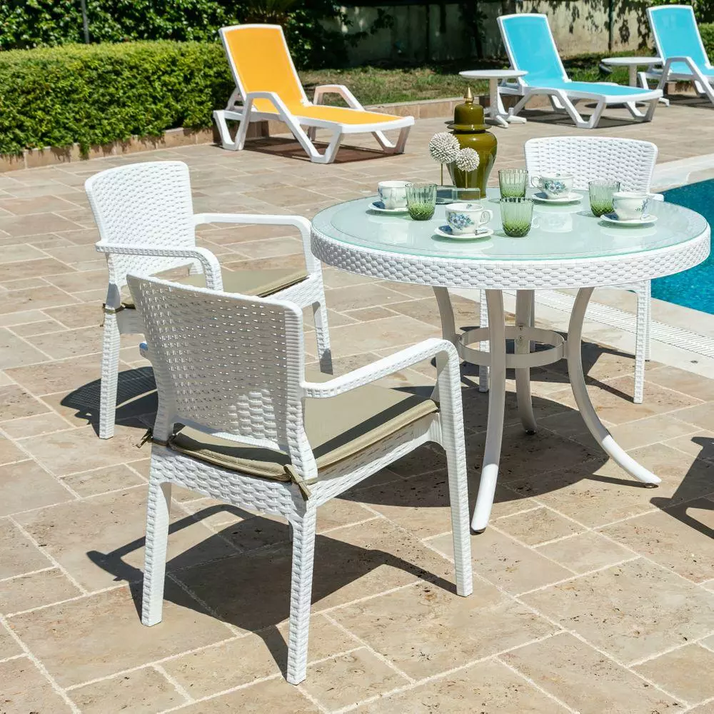 Стіл Osaka зі стільницею із загартованого скла прекрасно підходить для використання, як в класичних так і в сучасних стильових напрямках. Стіл виглядає презентабельно, надає інтер'єру стильності і розкоші. Підходить для використання на вулиці біля басейну, терасах, садах, а також в приміщенні ресторанів, обідніх кімнат і кухонь. Міцні алюмінієві ніжки мають регулювання висоти і ухилу. Матеріали виробу стійкі до перепадів температур, УФ-випромінювання.
