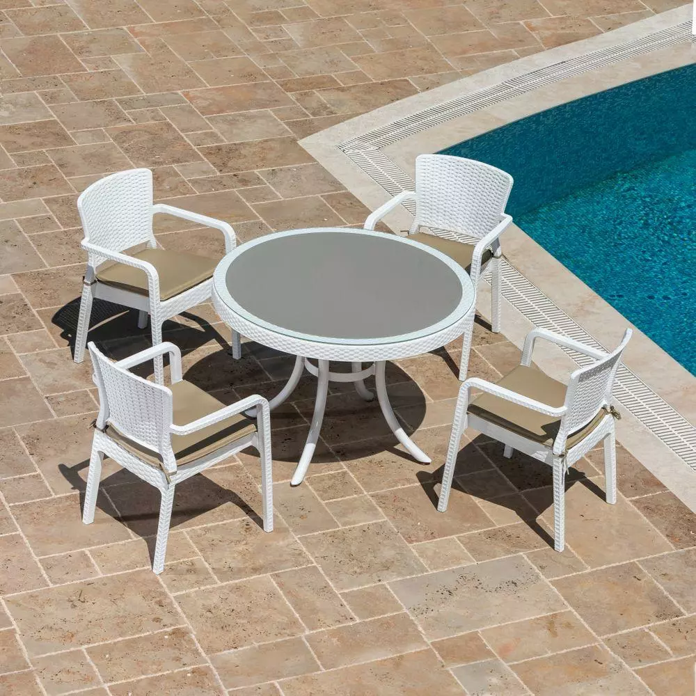 Стіл Osaka зі стільницею із загартованого скла прекрасно підходить для використання, як в класичних так і в сучасних стильових напрямках. Стіл виглядає презентабельно, надає інтер'єру стильності і розкоші. Підходить для використання на вулиці біля басейну, терасах, садах, а також в приміщенні ресторанів, обідніх кімнат і кухонь. Міцні алюмінієві ніжки мають регулювання висоти і ухилу. Матеріали виробу стійкі до перепадів температур, УФ-випромінювання.