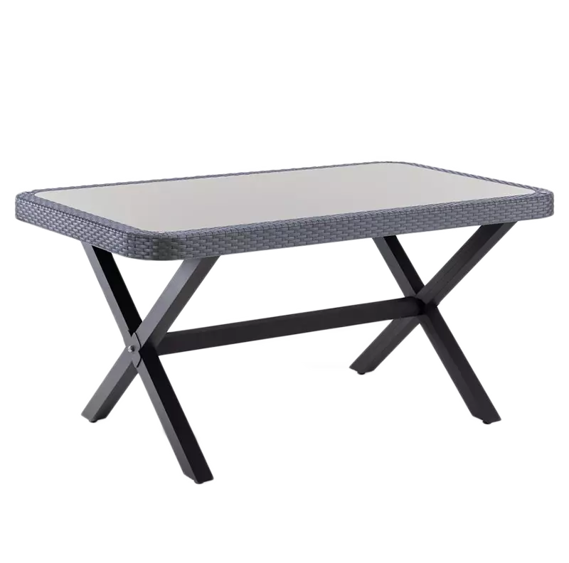 Стіл Osaka-X inglass від виробника професійних меблів Tillia, зі стільницею під ротанг і зовнішнім склом. Схрещені алюмінієві фарбовані ніжки, зручні для підставки ніг людини, що сидить. Висота та ухил столу регулюються, це дозволяє рівно встановити стіл на будь-яку поверхню. Матеріали виробу стійкі до природних опадів, перепадів температур, впливу ультрафіолетового випромінювання. Призначений для використання на вулиці та в приміщенні. Легко очищується теплою водою. Поставляється у розібраному вигляді, у двох коробках. Схема установки та допоміжні деталі входять до комплекту. Складання бажано здійснювати за допомогою акумуляторної або хрестової викрутки. На продукцію Tilia надається дворічна гарантія. Виріб протестований європейським сертифікованим центром CATAS та відповідає національним та міжнародним стандартам якості, безпеки, міцності та довговічності.