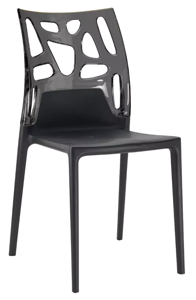 Стілець Papatya Ego-Rock чорне сидіння, верх прозоро-димчастий