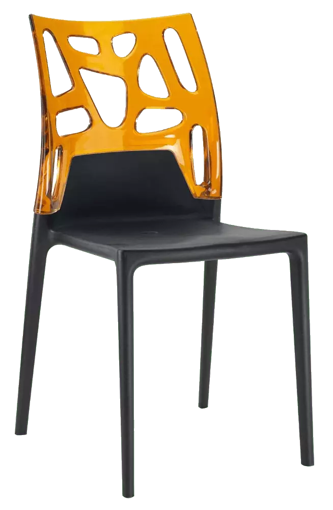 Стілець Papatya Ego-Rock чорне сидіння, верх прозоро-помаранчевий