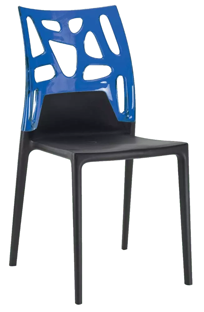 Стілець Papatya Ego-Rock чорне сидіння, верх прозоро-синій