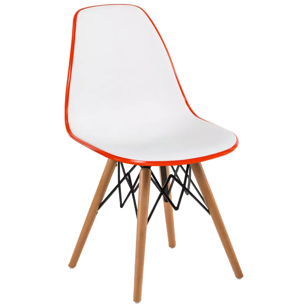 Стілець EOS-V це прекрасне поєднання двох різних кольорів, злитих в єдиний корпус з поліпропілену. Енергійний, елегантний і надзвичайно красивий. EOS це нова надихаюча марка поп-арт культури, підходить для використання практично в будь-якому місці. Стілець ідеально підходить для будинку, їдальні, а також прекрасно вписується в офіси, кабінети і кімнати очікувань. Матеріал виробу поліпропілен посилений скловолокном, завдяки чому виріб стійкий до низьких і високих температур, вологості, а також забезпечує високу міцність і довгий термін експлуатації. Конусні міцні ніжки виготовлені з масиву натурального дерева бук з оригінальними металевими опорами.
