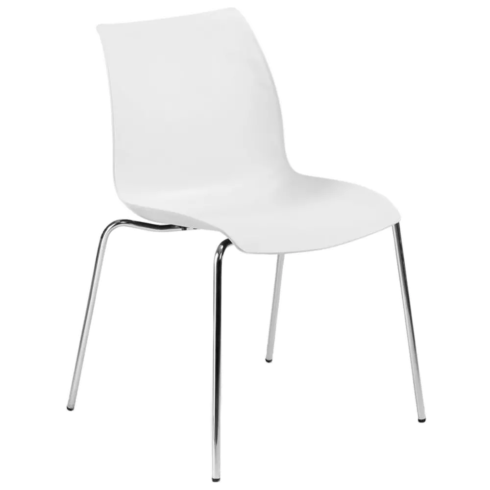 Стілець Laser практичний і зручний, який ідеально вписується в кухню і їдальню. Підходить для громадських місць, таких як клуби, ресторани, офіси. Стілець матовий, матеріал поліпропілен посилений скловолокном, завдяки чому виріб стійкий до низьких і високих температур, вологості, а також забезпечує високу міцність і довгий термін експлуатації. Ніжки і рама металеві, хромовані Ø14 мм, оснащені заглушками проти ковзання по підлозі.