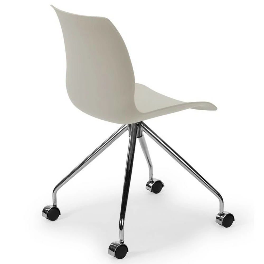 Стілець Laser-O практичний і зручний, який ідеально вписується в кухню і їдальню. Також ідеально підходить для громадських місць, таких як клуби, ресторани, офіси. Стілець матовий, матеріал поліпропілен посилений скловолокном, завдяки чому виріб стійкий до низьких і високих температур, вологості, а також забезпечує високу міцність і довгий термін експлуатації. Ніжки і рама металеві, хромовані, комплектуються роликами, забезпечуючи кріслу мобільність.