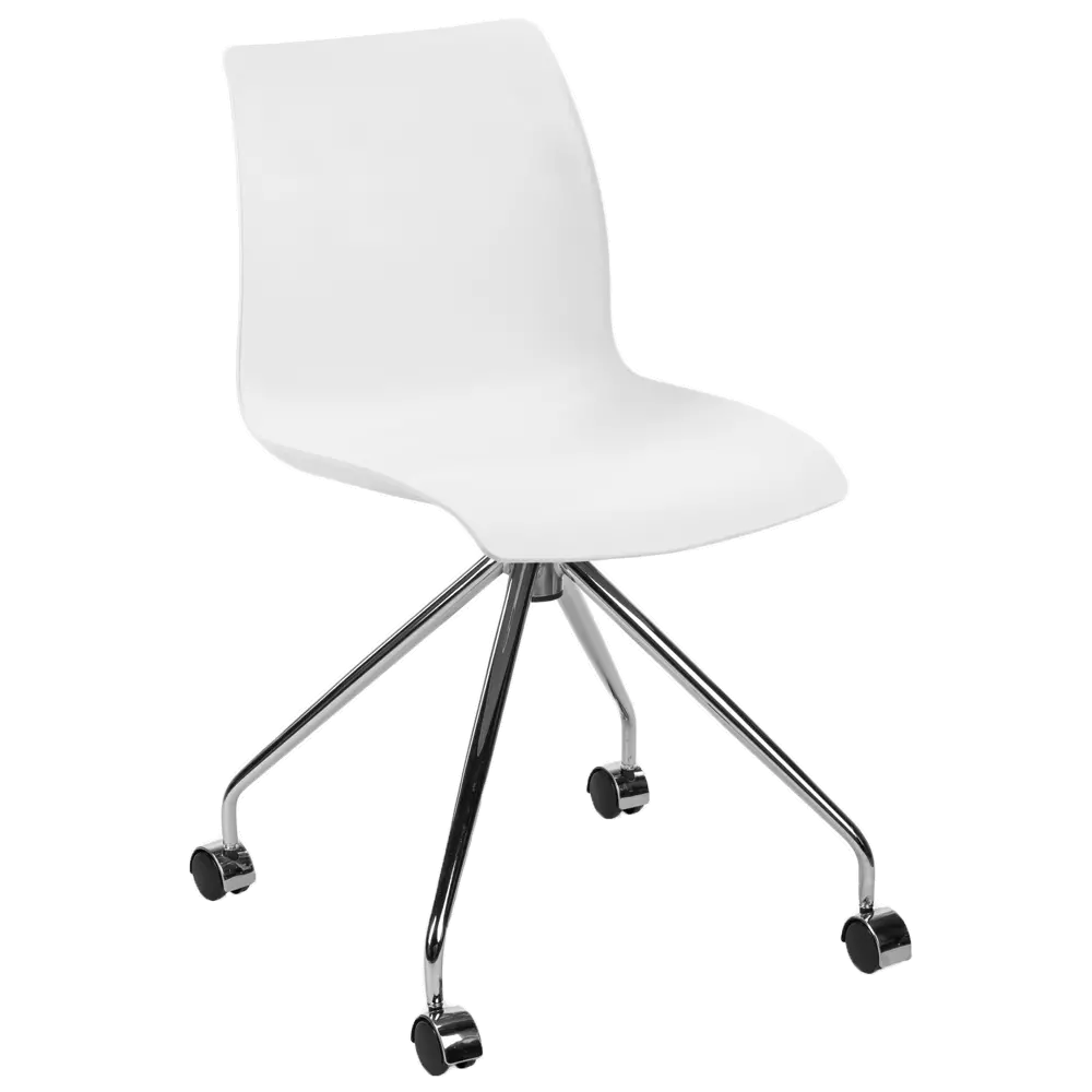Стілець Laser-O практичний і зручний, який ідеально вписується в кухню і їдальню. Також ідеально підходить для громадських місць, таких як клуби, ресторани, офіси. Стілець матовий, матеріал поліпропілен посилений скловолокном, завдяки чому виріб стійкий до низьких і високих температур, вологості, а також забезпечує високу міцність і довгий термін експлуатації. Ніжки і рама металеві, хромовані, комплектуються роликами, забезпечуючи кріслу мобільність.
