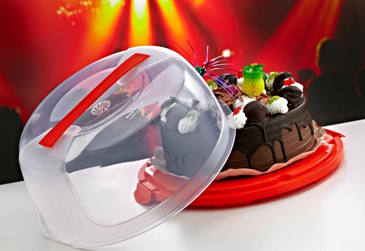 Практична тортовниця з кришкою і ручкою, для зберігання і транспортування не тільки улюблених десертів, а й інших продуктів. Фіксатори з двох сторін щільно з'єднують верхню і нижню частини, що дозволяє уникнути обвітрювання. Виготовлено з високоякісного міцного пластику безпечного для харчових продуктів. Температурний діапазон використання від -25 до + 95°С. Можна мити в посудомийній машині. Допустима заморозка.