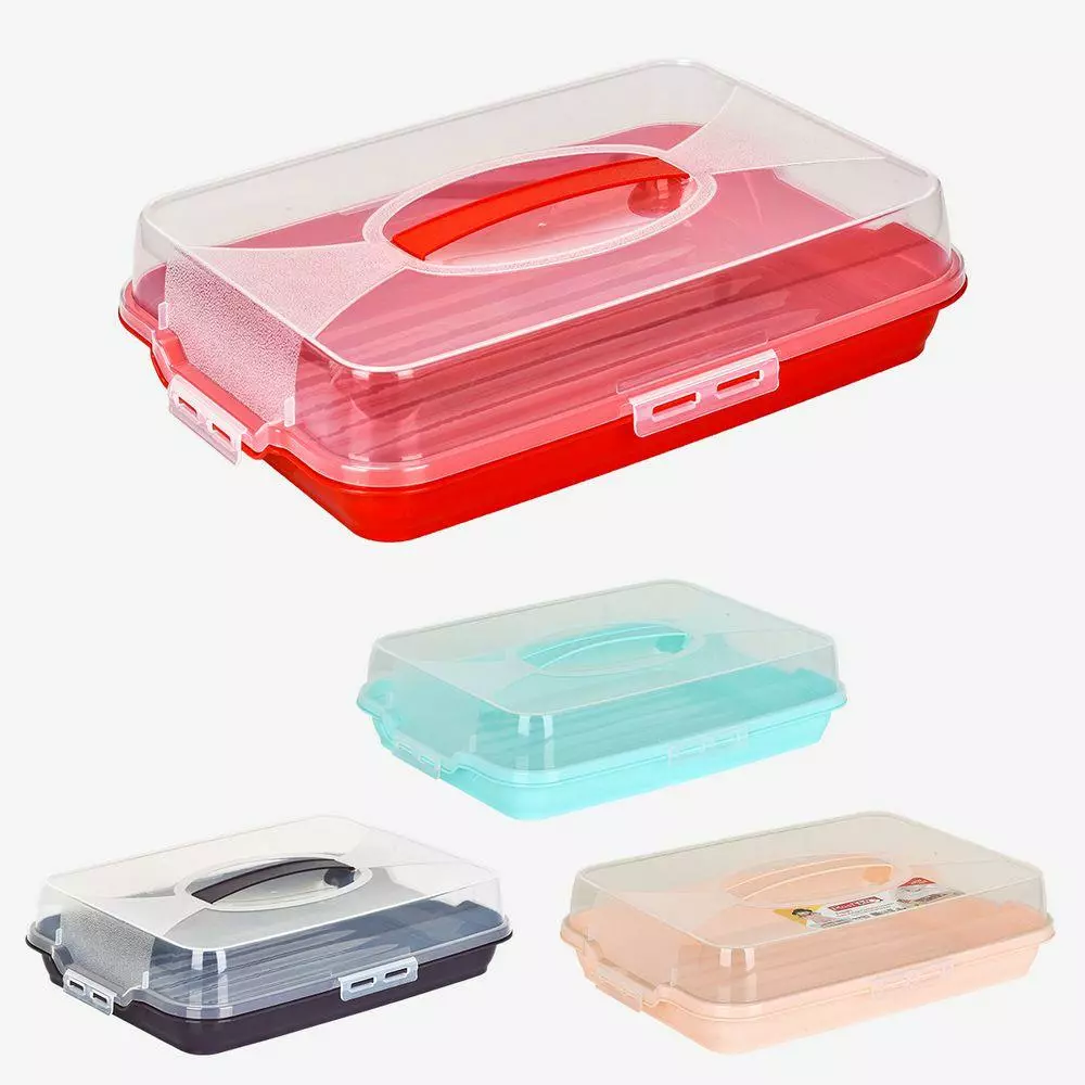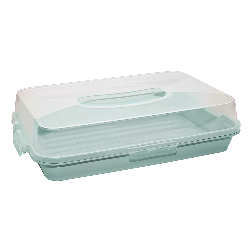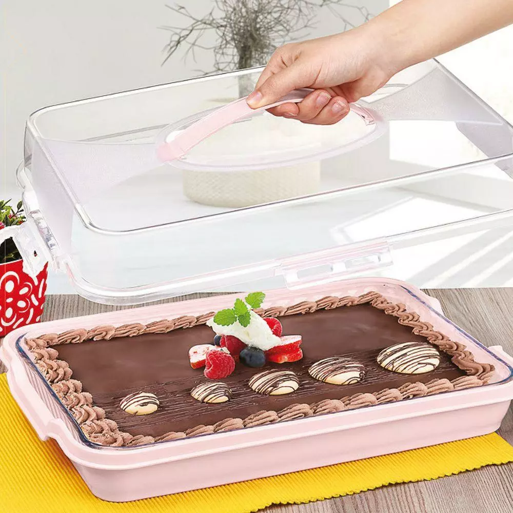 Практична тортовниця з кришкою і ручкою, для зберігання і транспортування не тільки улюблених десертів, а й інших продуктів. Фіксатори з чотирьох сторін щільно з'єднують верхню і нижню частини, що дозволяє уникнути обвітрювання. Виготовлено з високоякісного міцного пластику безпечного для харчових продуктів. Температурний діапазон використання від -25 до + 95°С. Можна мити в посудомийній машині. Допустима заморозка.