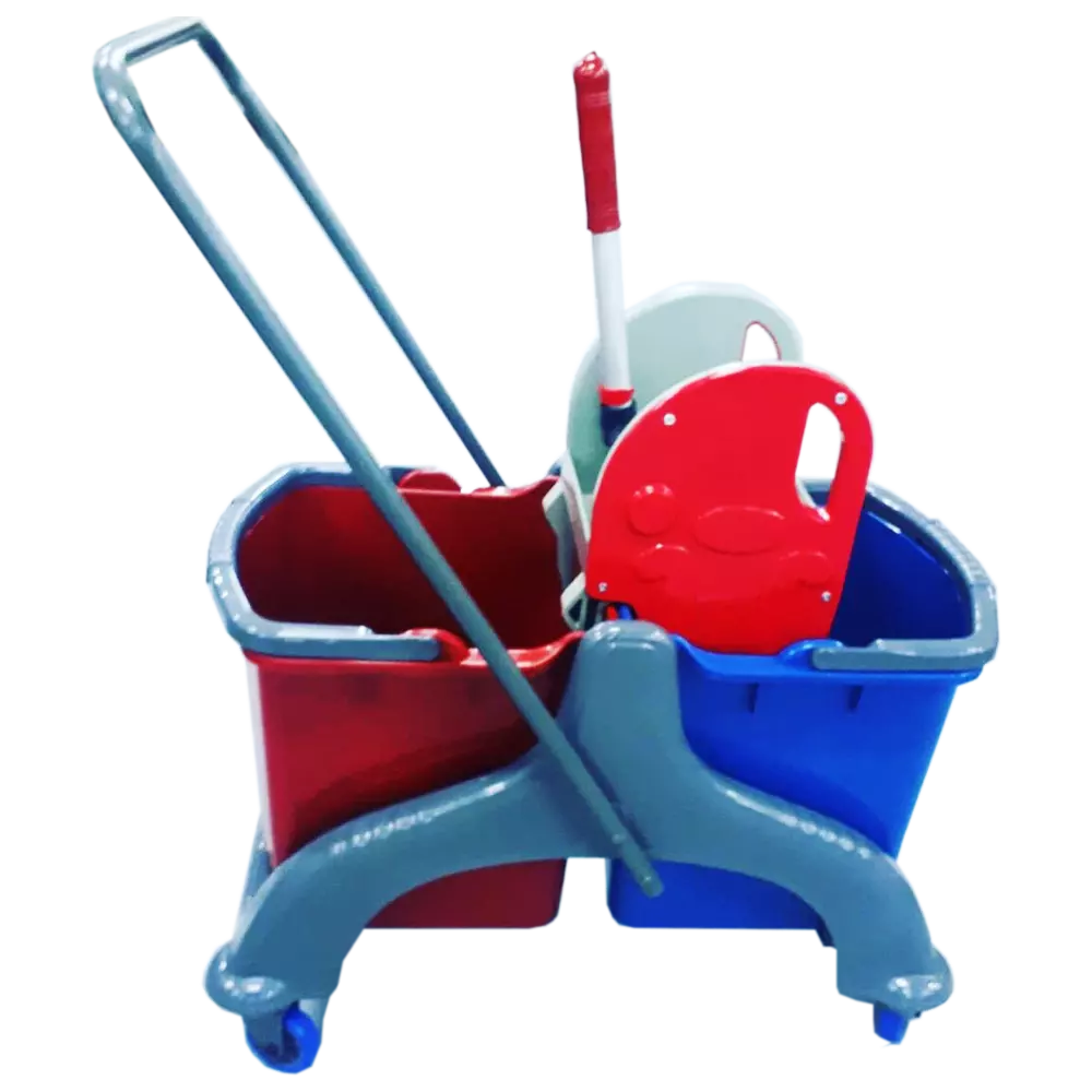 Візок для прибирання Planet маневрений і мобільний у використанні, 4 колеса плавно і легко рухаються, обертаючись на 360°. Набір вміщує два відра по 25 л кожне: синє для чистої води і червоне для брудної води. Значну економію часу приносить віджимання для швабр, це дозволяє вичавлювати насадки швабри з мінімальними зусиллями і без рук в брудній воді. З даної візком можна швидко і ефективно проводити процес прибирання підлоги на великих площах. Візок виготовлений з якісних матеріалів і гарантовано прослужить довгі роки, збереже презентабельний вигляд і функціональність.
